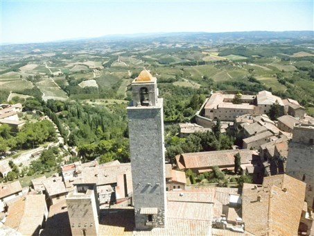 5. den: toulky krajem Toskánska mezi vinohrady s nádhernými výhledy do krajiny vína a cypřišů, lázně GAMBASSIv samotném středu Toskánska v kopcovité krajině s vinicemi a centrum kraje SAN GIMIGNANO (UNESCO), město rodových věží, náměstí Piazza della Cisterna se starobylými paláci, chrám Collegiata s freskami Ghirlandaia, Museo Civico (etruské a středověké památky), pevnost Rocca, kostel San Agostino, fakult. ochutnávka vína Vernaccia a místní gastronomie (toskánské salámy, lanýže, olivový olej, ocet balsamico), dojezd na ubytování