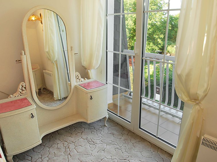 4-pokojový byt 99 m2 v 1. patře. Komfortní a útulné zařízení: velký obývací pokoj s bar, TV-satelit a rádio. Vstup na balkon, na terasu, západní orientace. 1× pokoj s 1× lůžko a 1× dvoulůžko. Vstup na balkon. 1× pokoj s 1× dvoulůžko. Vstup na balkon. 1× pokoj s 1× lůžko a 1× francouzským lužkem (2 os.). Kuchyňský kout (myčka, 4 plotýnky – sklokeramická deska, mikrovlnka, elektrický kávovar). Vana/sprcha/bidet/WC, dvojumyvadlo, hydromasážní sprcha. E-topení. Velký balkon, terasa, západní orientace. Zahradní nábytek, gril. Pěkný výhled na jezero a na krajinu. K dispozici: pračka, žehlička. Internet (Wireless LAN [WLAN], zdarma). Pozor prosím: nekuřácký dům. Domácí mazlíčci nejsou povoleni.