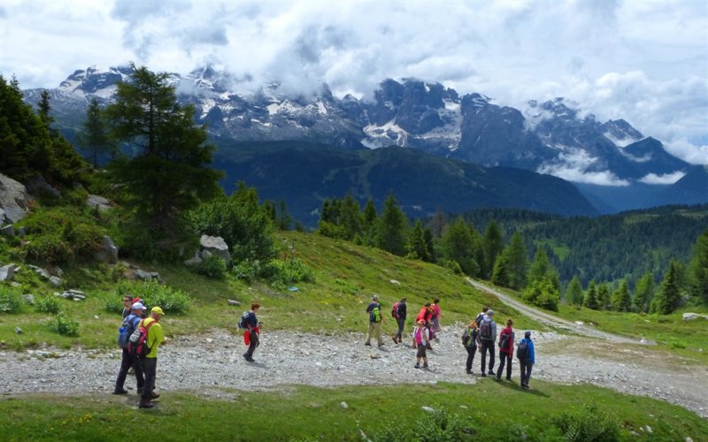 6. den: Snídaně, busem do COMMEZZADURA, výjezd lanovkou až na VAL MASTELLINA (1 780 m), základní varianta (2 z 5; 6 hod.,400 m, 400 m): ke kouzelnému jezeru LAGO DELLE MALGHETTE (1 890 m), kde se lze občerstvit u chaty, dále k salaši MALGA FOLGARIDA DI DIMARO (1 662 m), kde je možné zakoupit domácí výborný sýr, potom k horní stanici lanovky na Malghet Aut. Lehčí varianta (1,5 z 5; 2,5 hod., 100 m, 200 m): jen k horní stanici lanovky na MALGHET AUT (1 850 m), všichni sjezd lanovkou do FOLGARIDY, odjezd do hotelu, večeře.