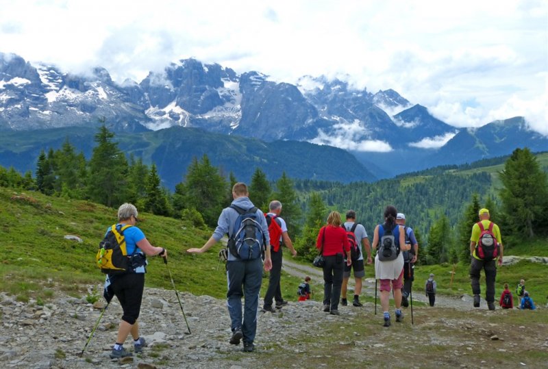 5. den: Snídaně, odjezd busem do PEIA-FONTI, výjezd lanovkou až k chatě RIFUGIO DOSS SEI CEMBRI (2 315 m), základní varianta (2 z 5; 6 hod., 650 m): přes MALGA SALINE (2 089 m) a dále přes BAITO DEL MAREGGI (1 935 m) do městečka PEIO (1 660 m). Lehčí varianta (1,5 z 5; 4 hod., 400 m): sestup od lanovky do TARLENTA (2 000 m), všichni odjezd busem do hotelu, večeře.