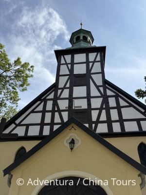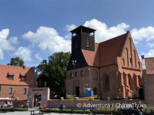 4. denBusem do městečka Rumia a odsud na kole přes chráněnou krajinnou oblast Trójmiejski Park Krajobrazowy do „polského Jeruzaléma“ a jednoho z hlavních měst Kašubska - Wejherowa (rozsáhlá kalvárie, novogotický kostel sv. Stanislava Kostky, zámecký park s muzeem Kašubského písemnictví, stylová budova Kašubské filharmonie, novobarokní radnice); dále úchvatnou krajinou bukový lesů a přes přírodní rezervaci Bielawa dojezd k moři a do kempu (61 km/ ↑ 400 m); cestou starý hrázděný kostel ve vesničce Mechowo; kratší varianta z Celbowo přes Mechowo k moři a do kempu (38,5 km/ rovina).
