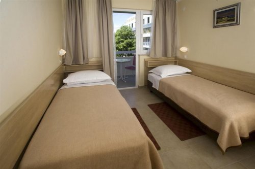 Do 50 m od hotelu jsou jak kamenité pláže a betonové plochy s pozvolným vstupem do moře, tak oblázkové pláže vhodné pro rodiny s dětmi. Za svou čistotu a služby získala pláž Modrou vlajku – najdete zde sprchy, lehátka se slunečníky (za poplatek, cena v sezóně 2024 byla 20 Kn lehátko + 20 Kn slunečník), bary a restaurace.