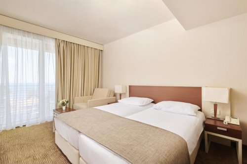 2lůžkové pokoje s možností 1 přistýlky, sociální zařízení, klimatizace, SAT TV, WiFi, trezor, telefon, minibar, balkon nebo balkon ma mořskou stranu.