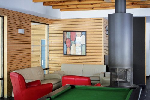 recepce / lobby s krbem, úschovna lyží, výtah, veřejné parkoviště