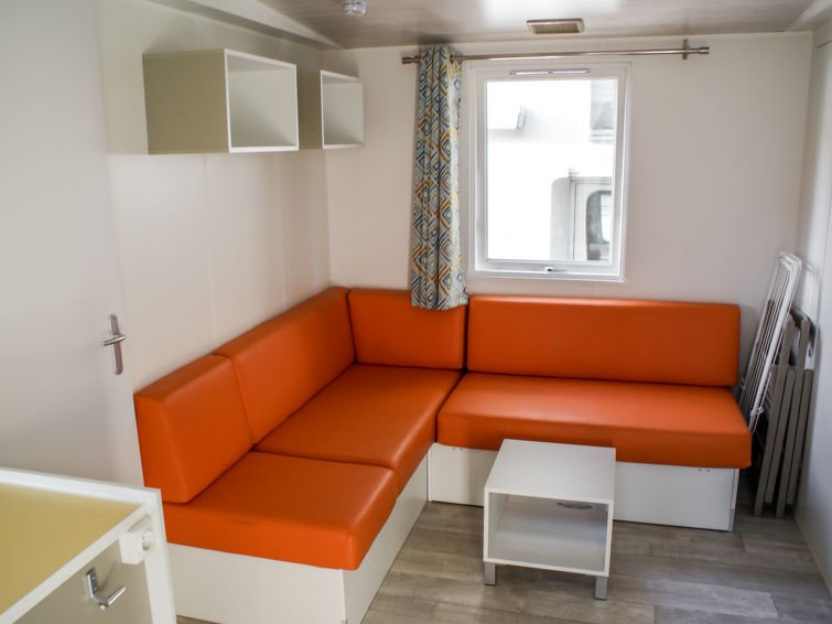 4-pokojová mobilní dům 37 m2. Obývací pokoj s 1× pohovka pro 2 osoby a jídelní stůl. 2× pokoj, v kazdem pokoji s 1× dvoulůžko. 1× pokoj s 2× lůžko. Kuchyně (4 plotýnky, mikrovlnka, mraznička). Sprcha, WC zvlášť. Terasa. Zahradní nábytek. K dispozici: Internet (Wireless LAN [WLAN], zdarma). Maximálně 1 domácí zvíře (pes) povoleno.