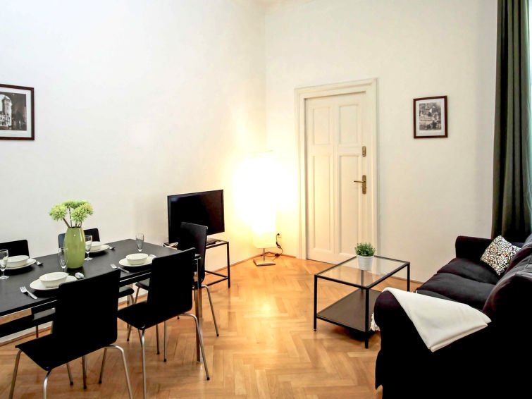 Komfortní, historický bytový dům „St. Giles“, z 14. století, renovovaný. Ve čtvrti Old Town, v centru obce Praha, v srdci města, 200 m od řeky. V domě: výtah, ústřední topení, bezpečnostní zařizení, pračka. Potraviny 200 m, obchodní centrum 300 m, restaurace 20 m, bar, kavárna, letní předzahrádka 100 m, tramvaj „Národní třída“ 300 m, autobusová zastávka „Mariánské náměstí“ 400 m, metro „Národní třída“ 350 m, krytý bazén 1.5 km. Sportovní centrum 1.5 km, dětské hřiště 1 km. Atrakce v blízkosti: Orloj 400 m, Karlův most 500 m, Betlémská kaple 100 m, Pražský hrad 2 km, Vyšehrad 2.5 km, Václavské náměstí 500 m. Na vyžádání může být zorganizován transfer z letiště k rekreačnímu domu. Katalogová fotografie je pouze příkladem jednoho z apartmánů v tomto domě. Parkování na vyžádání (za příplatek, omezená kapacita).