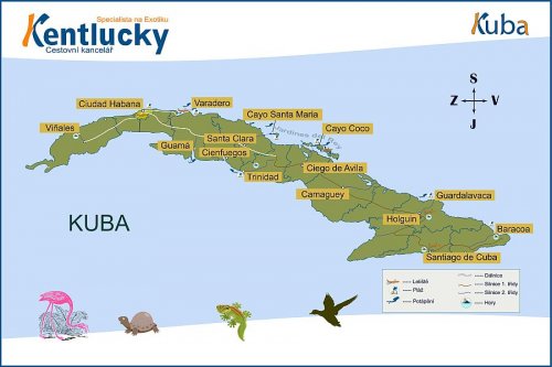 ZAJÍMAVÁ MÍSTA KUBY: Havana: Hlavní město Kuby. Turistické zajímavosti – Náměstí Revoluce, Nacional, La Rampa, Parque Central, Kapitol, Presidentský palác, Kolumbův hřbitov, Floridita a mnohé další. Centrum nočního života. Stará Havana: Koloniální architektura. 4 krásná náměstí, Nábřežní promenáda „Malecón“. Nespočet muzeí a galerií. Viňales: Překrásné údolí. Vápencové masívy „mogoty“. Tabákové plantáže. Jeskyně, „Mural de la Prehistoria“ Soroa: Národní park. Orchideárium. Vodopády. Ekovesnička Las Terrazas. Maria La Gorda: Renomované potápěčské centrum. Pláž. Pinar del Rio: Typické kubánské neturistické město. Největší město na západě ostrova. Cayo Levisa: Turistický ostrůvek na severozápadě ostrova (20 km od pobřeží). Pláž. Cienaga de Zapata: Národní park. Indiánská vesnice. Krokodýlí farma. Zátoka sviní. Muzeum Girón. Pláže. Rybaření. Potápění Varadero: Nejznámější letovisko na Kubě s jednou z nejkrásnějších pláží na světě. Potápění. Golf. Delfinárium. ALL INCLUSIVE resorty. Cienfuegos: Typické kubánské velkoměsto. Promenáda. Architektonický skvost. V blízkosti pláže a hory. Noční život. Trinidad: Koloniální město na seznamu UNESCO. Architektura. Historie. Plantáže. Canchanchara. Manaca Iznaga. V blízkosti pláže a hory. Hanabanilla a Topes de Collantes: Jezero v horách. Vodopády. Ekoturistika. Národní parky „El Nicho“ a „Guanayara“ Santa Clara: Moderní universitní město, mausoleum Che Guevary, Vykolejený vlak. Noční život. Cayo Santa Maria, Las Brujas, Cayo Coco / Guillermo: Součást souostroví „Jardines del Rey“. Pláže. Potápění. Delfinárium. Rybaření. Katamaránové plavby. Příroda. Camaguey: Koloniální velkoměsto. Balet. Sancti Spiritus: Průjezdní, koloniální, neturistické místo. V blízkosti hor. Playa Santa Lucia: Pláž, 100 km severně od města Camaguey. Kite surfing. Holguin: Typické kubánské, neturistické město. V blízkosti hor a pláže. Playa Guardalavaca: Pláž, 45 km severně od města Holguin. Patří mezi nejhezčí pláže na Kubě. („Varadero“ východu) Santiago de Cuba: Druhé největší město na Kubě. Turistické zajímavosti: Pevnost „El Morro“. Katedrála. Pevnost „Moncada“. Koloniální architektura. Afro-kubánská kultura. Noční život. V blízkosti nejvyššího pohoří na Kubě „Sierra Maestra“. Baracoa: První osada Španělů na Kubě. Koloniální architektura. Mýtická hora „El Yunque“ Afro-kubánská kultura. Guantanámo: Průjezdní místo. Známé díky nedaleké americké vojenské základně a světoznámé písni „Guantanamera“ – v překladu: Holka z Guantanáma.