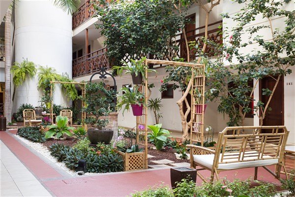 Ve dvou čtyřpatrových budovách hotel nabízí celkem 372 studií a apartmánů (některé uzpůsobeny pro osoby tělesně postižené), vstupní hala s recepcí, výtahy, bezplatné Wi-Fi připojení k internetu v prostoru recepce, restaurace, bary, dětský klub, samoobslužná prádelna, služba lékaře, kadeřnictví a masáže, půjčovna aut. V hotelové zahradě jsou 2 bazény (jeden v zimních měsících vyhřívaný), 1 bazén pouze pro dospělé, 2 dětské bazény, jacuzzi (za poplatek), sluneční terasa s lehátky a slunečníky. Pro děti i dospělé jsou připravovány denní a večerní animační programy, představení s živou hudbou.