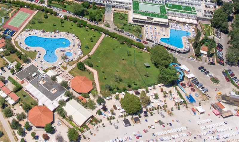 V roce 2012 rekonstruovaný hotel s 250 pokoji, recepcí, restaurací, barem, kavárnou, výtahem, společenskou místností a obchodem se suvenýry. WiFi připojení je k dispozici zdarma. Hotel je součástí Maslinica Resortu a v komplexu jsou 4 venkovní bazény. Dále jsou v hotelu 2 kryté bazény (viz popis níže). Lehátka u bazénů jsou zdarma, lehátka a slunečníky na pláži jsou za poplatek.
