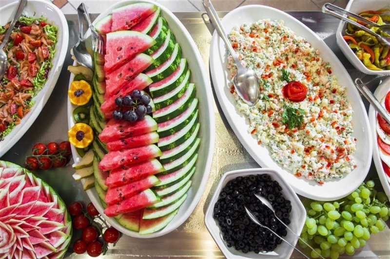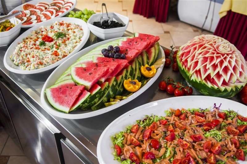 K polopenzi navíc dopolední snack (10:00–12:00), bufetový oběd