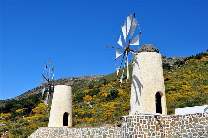 malými větrnými mlýny. Ruiny antického města LATÓ.