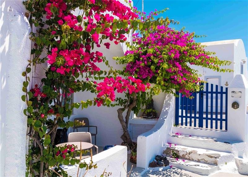 městě ostrova. Upravené modrobílé městečko nabízí obchůdky, taverny