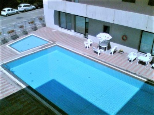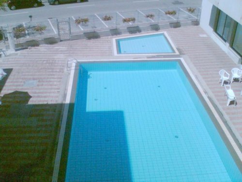 Výtah, bazén (v provozu cca od půlky června do půlky září) a parkoviště