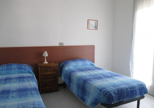 Trilo C-4 pro 4 osoby – Obývací pokoj s kuchyňským koutem, 1× ložnice s manželskou postelí, 1× ložnice se 2-mi samostatnými lůžky nebo palandou, sociální zařízení a balkon. Apartmán je klimatizovaný.