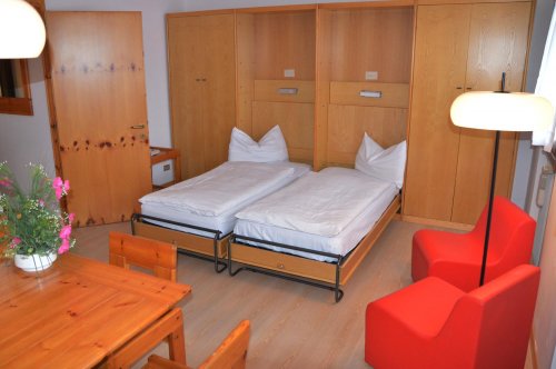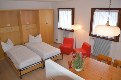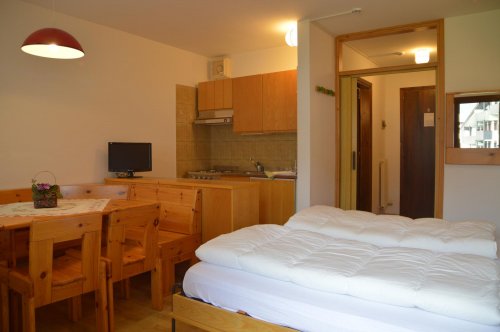 Mono pro 2–4 osoby (30–35 m2) – 1 místnost s rozkládacím gaučem a palandou (příp. 2 vyklápěcí postele). Max. obsazenost: 3 dospělí a dítě do 12 let.