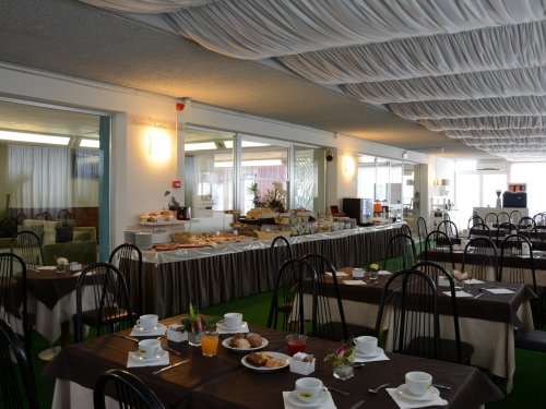 Hotel stojí přímo u pláže a promenády, nedaleko restaurací a nákupní zóny. Klientům je k dispozici recepce, Wi-Fi, klimatizované společné prostory, restaurace s panoramatickým výhledem, dětský koutek, bazén s vířivkou a solární terasou, půjčovna kol (za příplatek) a privátní parkoviště (omezená kapacita, za příplatek, nutno nahlásit při rezervaci). V průběhu letní sezóny jsou pořádány zábavné animační programy na pláži.