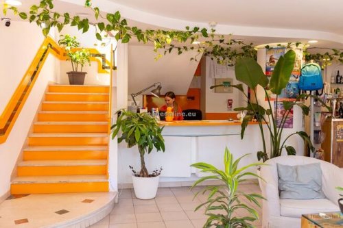 vstupní hala s recepcí, bar, výtah, venkovní bazén s hydromasáží a