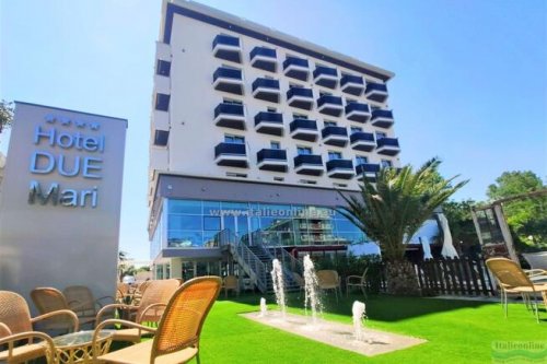 Čtyřhvězdičkový a kompletně zrekonstruovaný hotel Due Mari se nachází na okraji Rimini pouhých 30 m od písečné pláže Miramare, 200m od zastávky Metromare, 8km od historického centra Rimini, 4 km od Riccione a 1km od letiště. Pro hosty je k dispozici recepce a vstupní hala, vyhřívaný bazén s vířivkou, sluneční terasa, restaurace a bar, wifi v celém hotelu zdarma, parkoviště v blízkosti hotelu za poplatek cca 15 €/den, půjčení kol zdarma, možnost plážového servisu za poplatek, V nejvyšším patře hotelu na vás čeká wellness centrum Élite Spa (za poplatek) se saunou, tureckou lázní, masážemi a panoramatickou terasou. Všechny pokoje jsou komfortně zařízeny, mají vlastní koupelnu, klimatizaci a balkon s bočním nebo částečným výhledem na moře.