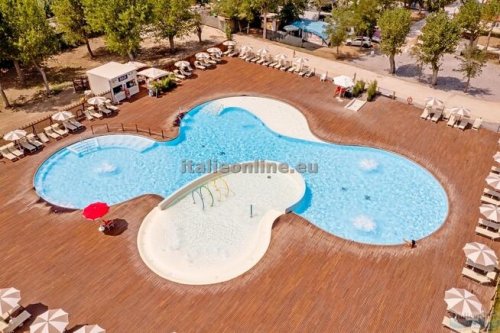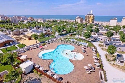 Rimini Family Resort leží v okrajové části Rimini – Viserba, od písečné pláže jej odděluje pouze místní silnice s pobřežní promenádou. Pro hosty je k dispozici recepce, bar, restaurace, pizzerie, Wi-Fi připojení ve veřejných prostorách zdarma, minimarket, dětské hřiště a herna, prádelna na mince a vyhrazená zóna pro psy. Přibližně od poloviny května do poloviny září je otevřen venkovní bazén pro dospělé a pro děti s velkou sluneční terasou (lehátka a slunečníky za poplatek) a probíhají animační programy (v italštině). Veřejná pláž je vzdálená cca 2 km. Přístup na soukromou pláž je povolen pouze po rezervaci plážového servisu.