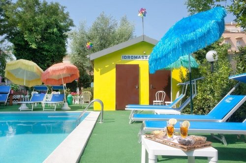 Příjmený rodinný hotel, ležící v Rimini v části Marina Centro, cca 200 m od pláže. Hotel se skládá ze dvou budov, disponuje recepcí, barem, restaurací, venkovním bazénem,