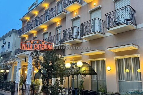 Hotel Villa Caterina se nachází ve městě Rimini, přibližně 250 m od písečné pláže. Pro hosty je k dispozici recepce, Wi-Fi připojení, klimatizace (za poplatek 10 €/den), úschovna zavazadel, restaurace, bar, konferenční místnost, TV místnost, zahrada, terasa a parkoviště (za poplatek, 150 m od hotelu). Stravování: snídaně (BB), polopenze (HB) a plná penze (FB). Zvířata povolena na vyžádání a za poplatek 20 €/pobyt.