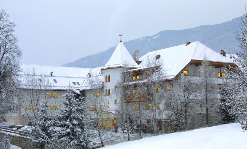 Nádherný hotel, stavěný v tradičním jihotyrolském stylu, ležící na