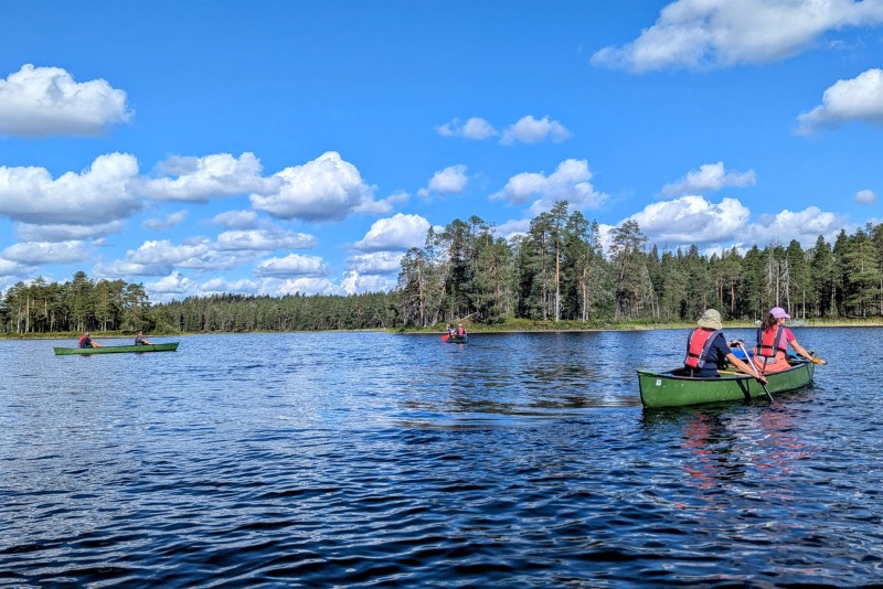 lesů, jezer a v prostředí nespoutaných meandrů řeky Karttimonjoki.