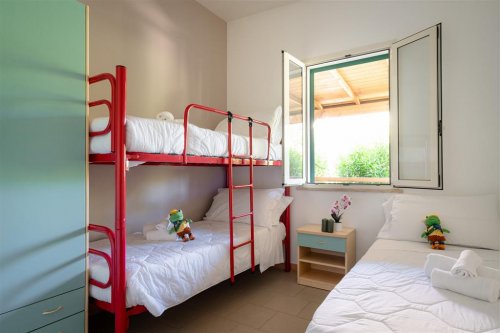 Kemp je rozložen na 70 000 m čtverečních, nachází se cca 250–300 m od písečné pláže, v závislosti na umístění apartmánu nebo bungalovu. V kempu najdete restauraci, bar, pizzerii, supermarket, bazén (lehátka za poplatek, povinnost mít koupací čepici), bazén pro děti, vířivku a dětské hřiště. V areálu si můžete zahrát stolní tenis nebo půjčit za kola za poplatek. Plážový volejbal je k dispozici zdarma. WiFi připojení zdarma je pouze ve společných prostorách a parkování také zdarma na parkovišti mimo kemp (omezená kapacita, nelze rezervovat). Pro děti od 4 do 10 let je zde připraven miniklub v termínu cca od 31.5. do 01.9. 2026. Domácí mazlíčci zde nejsou povoleni. V areálu je možné platit kartou Visa a Mastercard. Povinná vratná kauce cca 100 €/apartmán/bungalov. Klienti musejí objekt zanechat uklizený, nebo je možné zaplatit volitelný poplatek za závěrečný úklid 50 €. Každé pondělí ráno jsou bazény uzavřeny z důvodu nutné pravidelné údržby.