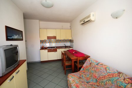 APARTMÁN BILO pro 4 osoby:dvoupokojový apartmán, 1× ložnice s manželským lůžkem, obývací pokoj s rozkládacím dvougaučem a kuchyňským koutem, koupelna/wc, TV, parkovací místo, balkon nebo terasa. APARTMÁN TRILO pro 6 osob: třípokojový apartmán: 1× ložnice s manželským lůžkem, 1× ložnice s dvěma samostatnými lůžky nebo palandou, obývací pokoj s rozkládacím dougaučem a kuchyňským koutem, koupelna/wc, balkon nebo terasa. APARTMÁNY QUADRO pro 9 osob: čtyřpokojový apartmán (cca 55 m2), PŘÍZEMÍ: obývací pokoj s rozkládacím dvougaučem a kuchyňským koutem, 1× ložnice s manželským lůžkem, balkon, koupelna/wc, 1. PATRO: 1× dvoulůžková ložnice, 1 ložnice se třemi lůžky, 1× koupelna/wc, některé apartmány vybaveny klimatizací za příplatek (na vyžádání v CK)