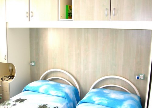 Apartmán typ TRILO pro 5 osob. Samotná bytová jednotka je strukturovaná do dvou podlaží: V přízemí prostorná obývací část s kuchyňskou linkou s vařicí deskou se 4 hořáky a troubou,rozkládací gauč ve francouzském stylu (1,5 míst ke spaní), sociální zařízení s WC, umyvadlem a pračkou. V patře dvě manželské ložnice a sociální zařízení s WC, bidetem a sprchovým boxem. Vyhrazené jedno parkovací místo přímo u objektu. K dispozici pračka, TV, klimatizace (za příplatek), safe,v oknech stahovací sítě proti hmyzu