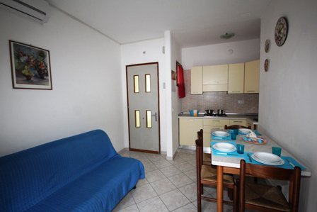 Apartmán TRILO pro 6 osob = 1× ložnice s manželským lůžkem, 1× ložnice s palandou, obývací pokoj s rozkládacím dvougaučem a kuchyňským koutem, koupelna/wc, některé aparmtány vybaveny klimatizací za poplatek ( na vyžádání v CK)