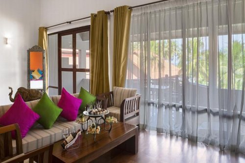 ROYAL PALMS BEACH HOTEL 5:Plážový hotel Royal Palms Beach se nachází jen pár kroků od krásné pláže Kalutara, podél jihozápadního pobřeží ostrova. Z hotelu je velmi to blízko do centra města Kalutara. Hotel disponuje celkem 129 elegantními, plně klimatizovanými pokoji v provedení „Deluxe“, „Royal Colonial Suite“, „Heritage Suite“, „Executive Suite“ a „Penthouse Suite“. Každý pokoj poskytuje komfort a nádherný výhled na Indický oceán z balkónu či terasy. Pokoje jsou vybaveny vlastní koupelnou s WC, satelitní TV, Wi-Fi připojením, minibarem, trezorem, vysoušečem vlasů a příslušenstvím pro přípravu kávy a čaje. Hotel má venkovní bazén, ájurvédské lázně, vířivku, posilovnu, tenisové a squashové kurty, hřiště na volejbal či stůl na biliard. Lze využít masáží pod dohledem odborně vyškoleného personálu. Dále se zde nachází business centrum a konferenční místnosti. Samozřejmostí je zde 24h pokojová služba, také lze využít služeb prádelny nebo navštívit místní knihovnu. Jsou zde celkem 2 restaurace, hlavní „Ranthalu“, kde se podává místní, mezinárodní a orientální kuchyně a která zároveň nabízí výhled z terasy na pláž, dále pak vynikájící japonský podnik „Seafood Restaurant“. U bazénu je také kavárna s nepřetržitým provozem a 2 bary, kde si můžete vychutnat nespočet koktejlů za doprovodu živé hudby. Hotel také pořádá tématické večery, kde si můžete vychutnat kulinářské speciality z celého světa. Personál hotelu Vám ochotně pomůže se zařízením výletů po okolí a že je rozhodně z čeho vybírat. Navštivte například chrám „Kalutara“ nebo hrad „Richmond“. Podél pobřeží jižního pásu leží historická města „Galle“ a „Matara“, kde je množství historických budov. Můžete také navštívit několik želvích líhní nebo si jen tak užívat surfování. Royal Palms Beach Hotel je situován 40 km jižně od Colomba a cca 80 km od mezinárodního letiště Bandaranaike. Bezplatné parkování je zajištěno.