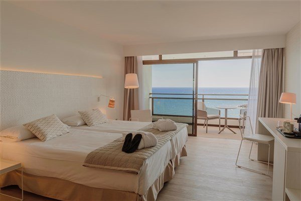 Elegantně zařízený klimatizovaný pokoj, má ve svém vybavení televizi se satelitními programy, telefon, rádio, bezplatné Wi-Fi připojení k internetu, minibar (na vyžádání), trezor (k pronájmu), integrovaná koupelna (sprcha oddělena skleněnou stěnou) s WC a vysoušečem vlasů. Balkon nebo terasa mají výhled do zahrady a na moře. Umístění – 6. patro. Maximální obsazenost – 3 osoby (starší 16 let).
