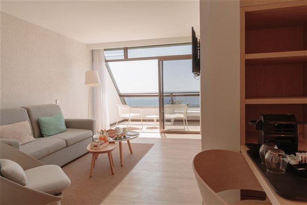 Základní vybavení má stejné jako dvoulůžkový pokoj, navíc je zde zařízení pro přípravu čaje a kávy, základna pro ipad/ipod, pantofle, župany, trezor (zdarma), ručníky k bazénu (zdarma), privátní vstup na privátní sluneční terasu v 4. patře, 1 x vstup do SPA. Umístění – 7. – 8. patro. Balkon má výhled na moře.Maximální obsazenost – 3 osoby (starší 16 let).