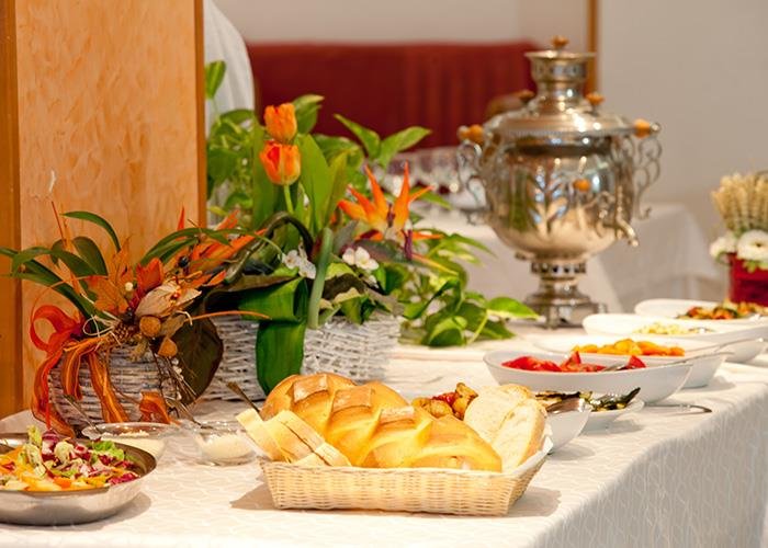 Plná penze. Snídaně formou bufetu; obědy a večeře servírované, výběr z několika menu, bez nápojů v ceně.