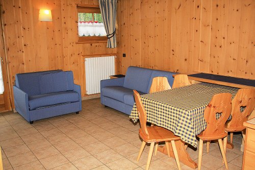 obývací pokoj s kuchyňským koutem a rozkládacím gaučem pro 2 osoby