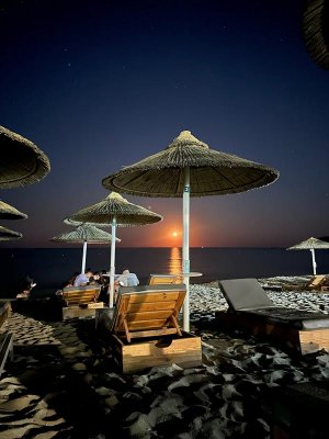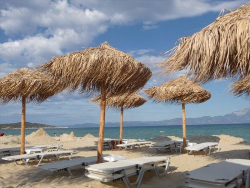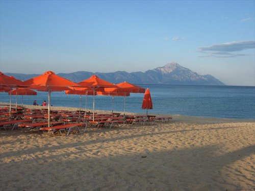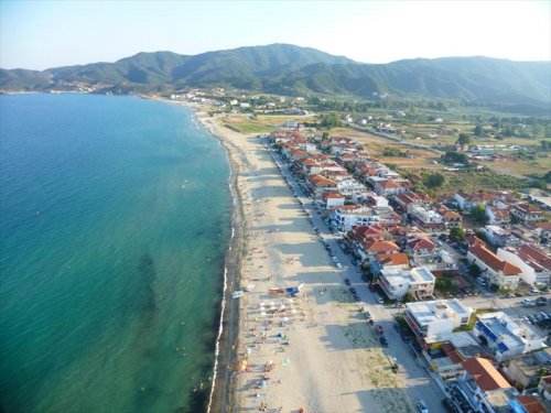 jedno z nejkrásnějších letovisek v celém Řecku s jedinečnou 3,5 km dlouhou písečnou pláží s pozvolným vstupem do moře, pláž je vzdálena pouhých 70 m, lehátka a slunečníky na pláži za poplatek (u plážových barů), velký výběr vodních sportů za poplatek, plážový volejbal