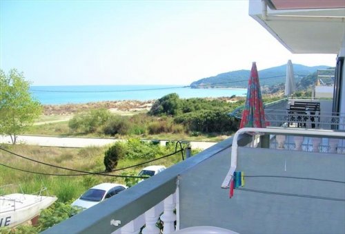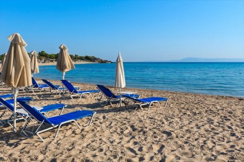 Pláž:jedno z nejkrásnějších letovisek v celém Řecku s jedinečnou 3,5 km dlouhou písečnou pláží s pozvolným vstupem do moře, pláž je vzdálena pouhých 70 m, lehátka a slunečníky na pláži za poplatek (u plážových barů), velký výběr vodních sportů za poplatek, plážový volejbal