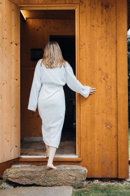 - zajímavě řešená wellness zóna s panoramatickou finskou saunou a možností ochlazení v horském potoce