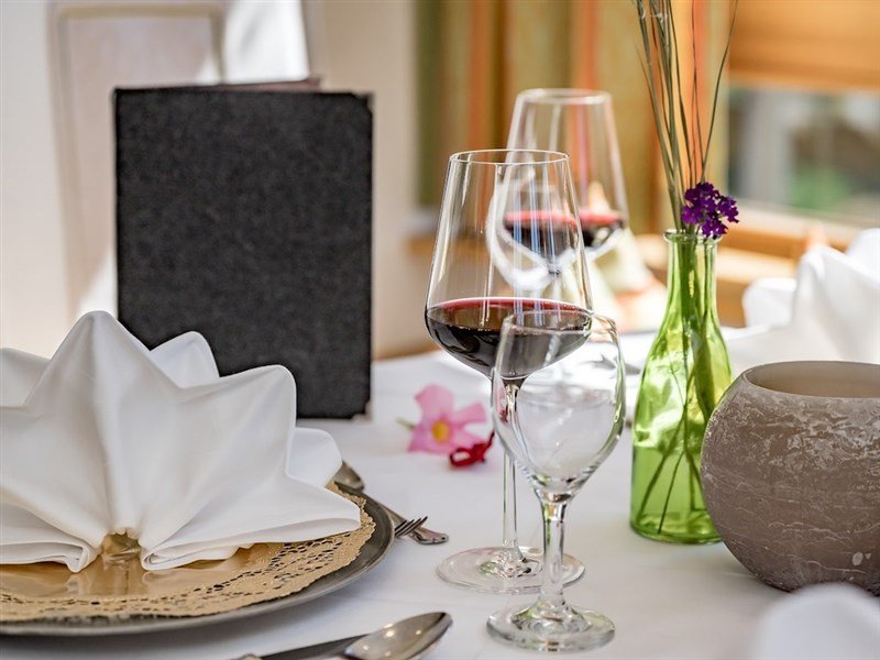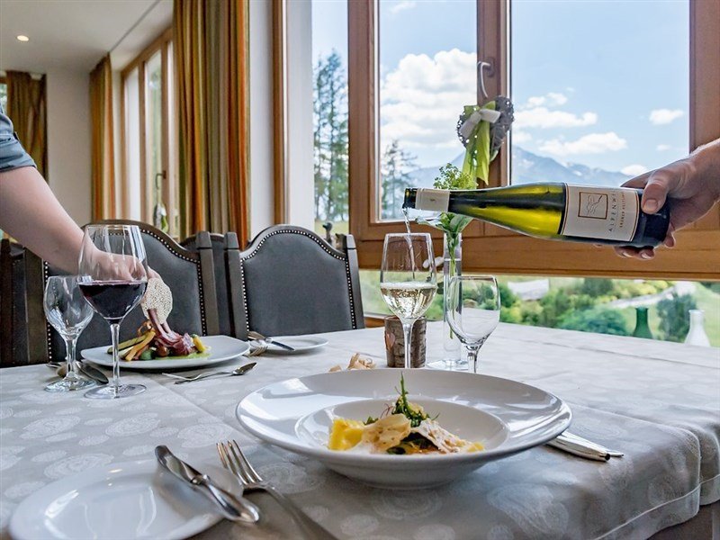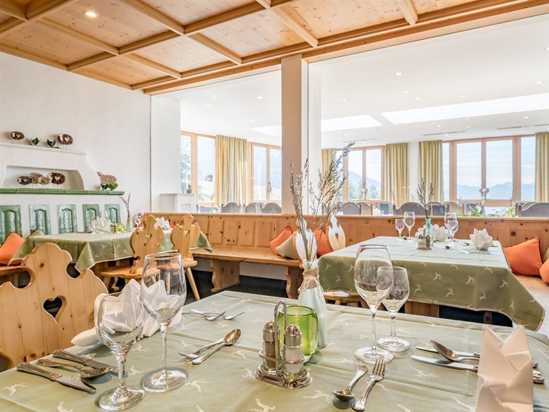 polopenze: bohatá snídaně formou bufetu 7–10 h. (domácí marmelády, zillertalské medové speciality, čerstvé pečivo, mléčné produkty, biomüsli, čaje, džusy, tyrolský špek, pomazánky, čerstvá vajíčka, aj.), pozdní servírovaná snídaně do 12 h., odpolední svačina 14–16 h. (polévka, saláty, pečivo, zákusky, káva a čaj) formou bufetu, k večeři výběr z menu o 4 chodech (saláty formou bufetu, sýry, čerstvé ovoce), 1× týdně tematický večer s tyrolskými specialitami. Vybrané nealkoholické nápoje během svačiny a večeře v ceně. Dětské menu.