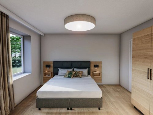 Apartmány kategorie 1 (60–70 m2) pro max. 4 dospělé osoby a 2 děti – 1 ložnice s dvoulůžkem a palandou, obývák.