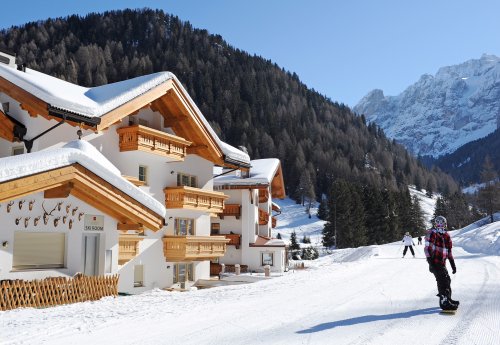 Krásný hotel leží přímo u sjezdovky, kde se díky vleku Ciampinoi