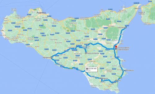 V poledne odlet z Prahy do Catanie na Sicílii. Po příletu do Catánie si