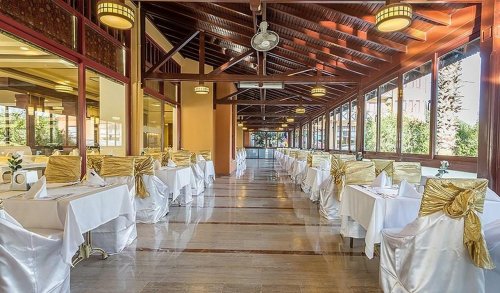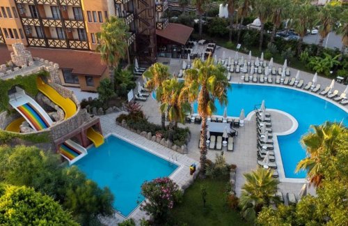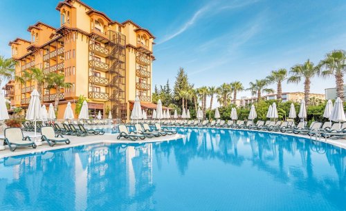 komplex hotelu je vsazen mezi další rekreační zařízení a místní komunikaci, od kterých je opticky oddělen vzrostlou zelení. Hlavní budova, architektonicky provedena ve marockém stylu, Vás uvítá vstupní halou s recepcí, směnárnou a lobby s barem. K dispozici Vám bude minimarket, obchod se suvenýry, společenská TV místnost, business centrum, dětský koutek, knihovna, kadeřnictví aj. K relaxaci zajisté přijde vhod hotelové wellness centrum s vnitřním bazénem (oddělená dětská část), saunou, hammamem, parní lázní, nabídkou různých typů masáží a kosmetických procedur. Nechybí ani kvalitně vybavené fitness centrum. Stravovací služby obstarává hlavní buffetová restaurace a další 2 a´la carte restaurace s nabídkou italské, rybí i tradiční turecké kuchyně. K posezení je zde lobby bar, snack-pool bar a plážový bar. Venkovní prostory tvoří velký sladkovodní bazén a samostatný dětský bazén se skluzavkami. Tyto jsou obklopeny sluneční terasou s lehátky a slunečníky (v ceně). K aktivnímu lze využít stolní tenis, šipky, kulečník, elektronické hry, beach volejbal, nabídku střediska vodních sportů (šlapadla, kánoe, paddle boarding, parasailing aj.). Na recepci lze sjednat rezervaci na některém z okolních golfových hřišť, potápění, pronájem vozidel. Hotel navíc pořádá animační programy pro všechny věkové kategorie hostů-společenské večery, diskotéky, aerobic, pilates, jógu, dětský miniklub aj. Parkování před hotelem pro hotelové hosty zdarma. Dlouhá písečná pláž s pozvolným vstupem do moře se nachází cca 200 m od hotelového resortu – lehátka, slunečníky jsou zde za poplatek.