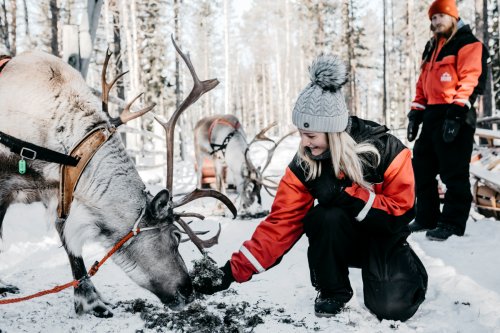 předem). Později odpoledne navštívíme sobí farmu a v saních tažených