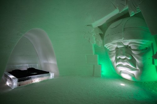 výzdobou ledovými sochami a freskami. Slavnostní večeře ve sněhové