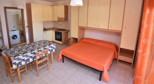Vybaven obývací místností s jedním až dvěma rozkládacími dvoulůžky, kuchyňským koutem, vlastním sociálním zařízením a balkonem. Klimatizace za poplatek cca 50 €/týden a apartmán s výhledem na moře je na vyžádání za příplatek cca 20 €.