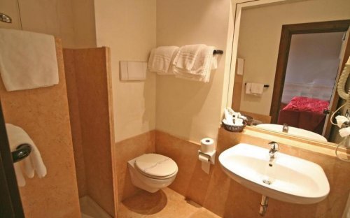 Pokoj disponuje vlastním sociálním zařízením, fénem, klimatizací, telefonem, SAT/TV, trezorem a WiFi připojením.