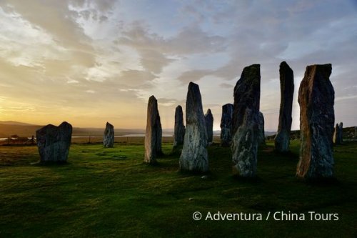 3. denOstrovy Lewis a Harris: brzy ráno vyjížďka na východ slunce u nejstaršího kamenného kruhu v Británii Callanish Standing Stones, nazývaného Stonehenge severu; dopoledne návštěva zachovalé věže z počátku letopočtu Dun Carloway Broch, tradičních domů croft-houses ve skanzenu vesnice Gearrannan Blackhouse village; přejezd panenskou krajinou severní části ostrova; v podvečer západ slunce na nejsevernějším cípu s majákem Butt of Lewis a návrat do Stornoway.