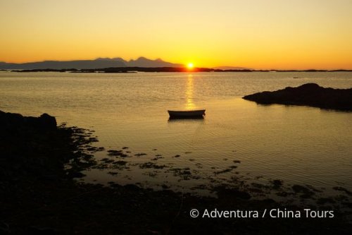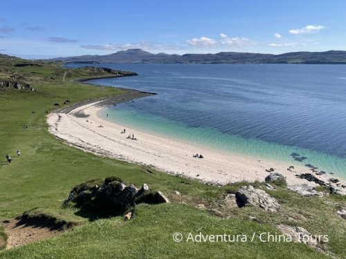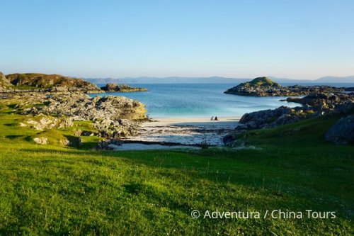 Souostroví projedeme od severu k jihu, po hrázích, ale i po vodě místními trajekty. Budeme se kochat, a možná i koupat na bílých písčitých plážích s průzračnou vodou, jaké by neznalý člověk zařadil spíše do karibské oblasti. Mineme desítky malých sladkovodních jezírek a vystoupáme na vrcholek kopce Beinn Mhòr s nádhernými panoramaty.
